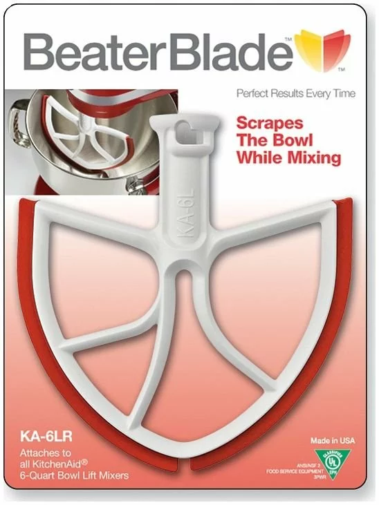 Make the most of your ingredients with the BeaterBlade. This revolutionary kitchen tool can be added to your KitchenAid stand mixer and features a silicone ridge that ensures your bowl is scraped clean of ingredients with every turn. This system virtually eliminates hand-scraping and food build-up on the sides and bottom of the bowl, making it a perfect addition when whipping up everything from quick bread, cheesecake, cookies, and more. Don’t stop and start your mixing to clean the bowl, add the BeaterBlade to your kitchen and blend your ingredients at the flip of a switch.