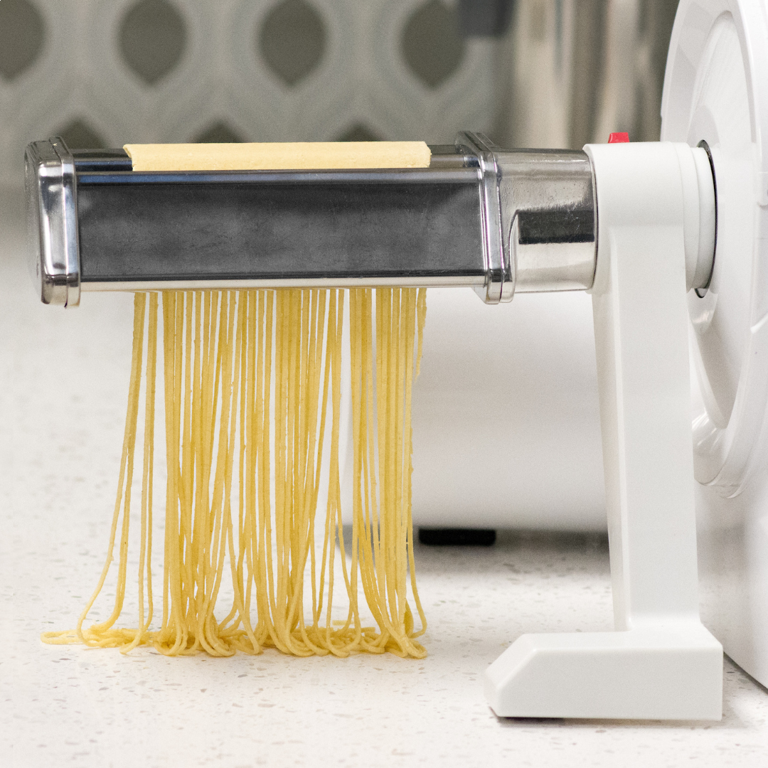 Simply feed your pasta dough through the pasta cutter for perfectly shaped and cut noodles. From every day lunches to evening dinner parties, enjoy homemade pasta anytime with the Bosch Universal Angel Hair Pasta Cutter.