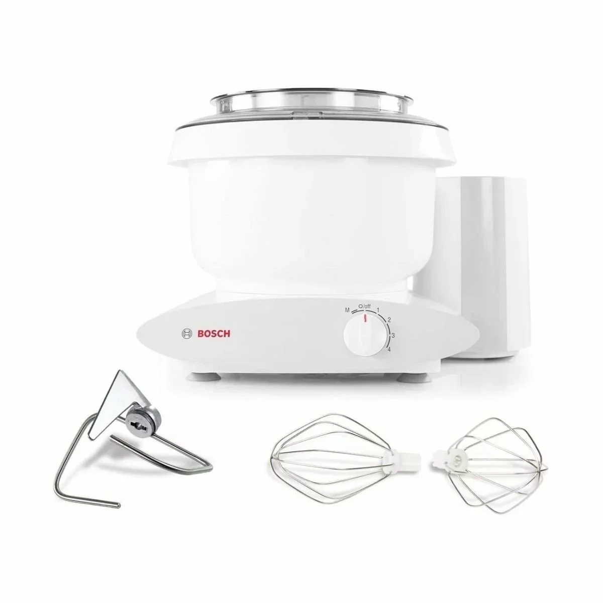 With the Bosch Universal Plus 6.5-Quart Mixer, you’ll be ready to effortlessly whip up all your favorite baked goods & recipes! With a powerful 500-watt motor and a generous 6.5-quart bowl, this mixer is equipped to mix up to 15 pounds of thick bread (including whole wheat) or pizza dough, as well as 34 dozen cookies in a single batch. Uniquely designed with the motor beneath the bowl and suction feet to keep it stable while mixing, this powerhouse appliance features four-speed options and a pulse option for mixing, blending, and combining ingredients to your recipe’s exact preference. This mixer comes with dual wire whips that allow you to whip hefty batches of cream and as little as one egg white at a time, a stainless steel heavy-duty dough hook that’s designed to mimic the motions of hand-kneading to stretch, tuck, & fold the dough for maximum gluten development, and a bowl cover that can be used while the mixer is running to keep dry & wet ingredients from splashing out of the bowl.