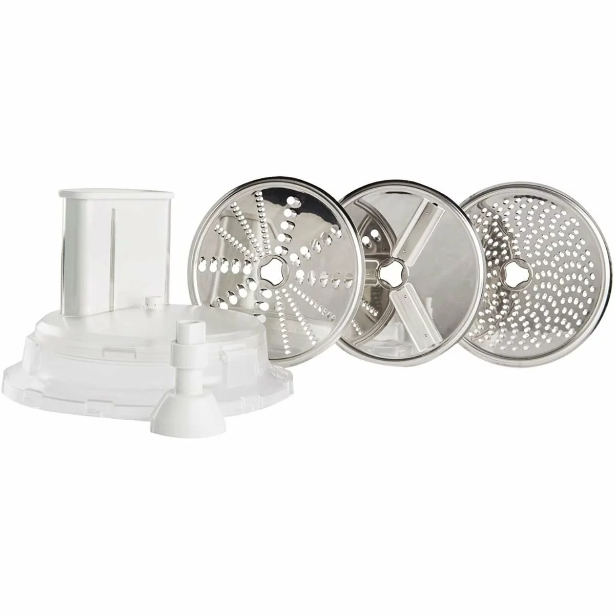 - Comes with 3 disks: Shredding, Grating, and Slicing Disc