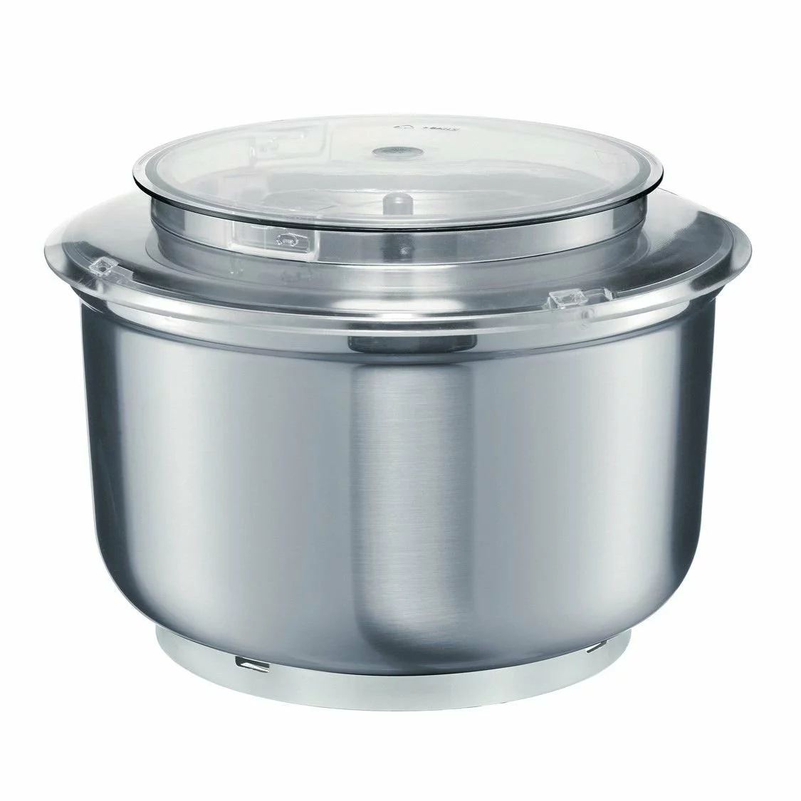 Bake up to nine loaves of bread from one batch of dough with this Bosch Universal Plus Stainless Steel Bowl, specially designed to further enhance the Bosch Universal Plus Kitchen Mixer. This bowl features a center column, comes with a lid and splash ring, and will handle approximately 15 lbs of dough. Easy to use, and easy to clean, this attachment will be a great addition to your Bosch Universal Plus Kitchen Mixer. Lovingly feed the masses in your household with your new Bosch Universal Plus Stainless Steel Bowl