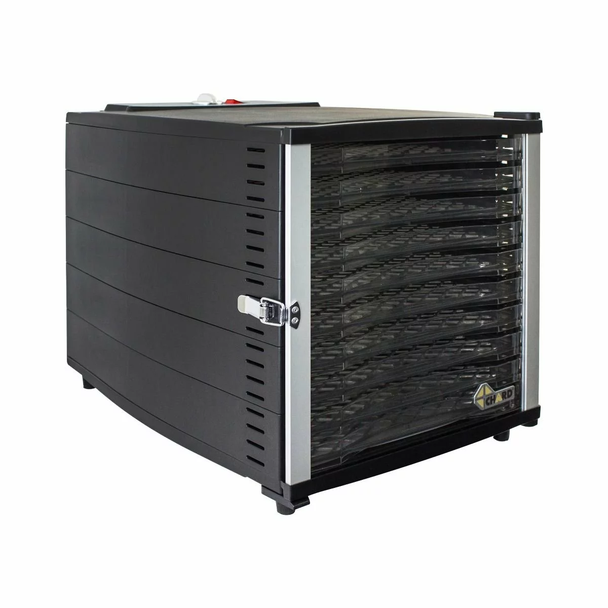 Become in charge when you have to dehydrate your game and harvest with the Chard 10 Tray Dehydrator! Made from stainless steel, this dehydrator runs at a whopping 800 watts of energy to provide perfect airflow and heat for evenly-dried meats, vegetables, fruits, and herbs. It features a simple acrylic door with a latch to help you observe the dehydration process and offers 1300 square inches of space for sizable jobs. Make fresh vegetable chips, mango habanero buffalo jerky, dried herbs and spices for seasonings, or delicious and healthy fruit leather snacks. On top of the dehydrator is a drying guide with various temperatures suggested for different food items, an easy-to-use temperature dial, and an illuminated on/off switch on the control panel. Due to its heavy-duty fan and even airflow, there is no need to manually rotate the trays. Included are 10 plastic trays and a nonstick drip sheet that catches dripping liquid and provides simple cleanup. Backed by a year warranty, the Chard 10 Tray Dehydrator is an effective and affordable dehydrator for familes that love to hunt and forage!