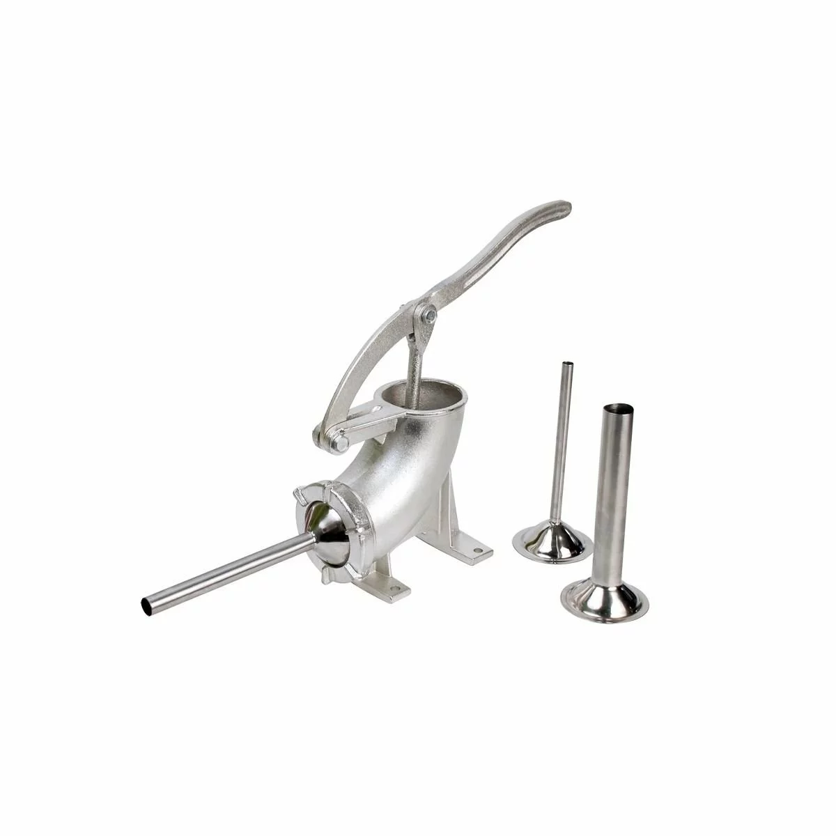 Make your own homemade sausage links, Italian sausage and bratwurst with the Horizontal Sausage Stuffer from Chard. Constructed from heavy duty tin-coated cast iron, this sausage stuffer has a bolt down body style that secures to your table or countertop for stable use. It includes three differently sized stuffing tubes, each with a wide mouth funnel-shaped end that allows for large quantities of meat to be pushed through a .25″, .75″ or 1.25″ diameter tapered tube. With its smooth lever-action operation, this stuffer is surprisingly easy to operate. The front collar and pushing handle disassemble for quick and easy cleanup when not in use. Perfect for hunters and homesteaders, the Chard Horizontal Sausage Stuffer will keep your freezer stocked with your favorite homemade sausages!