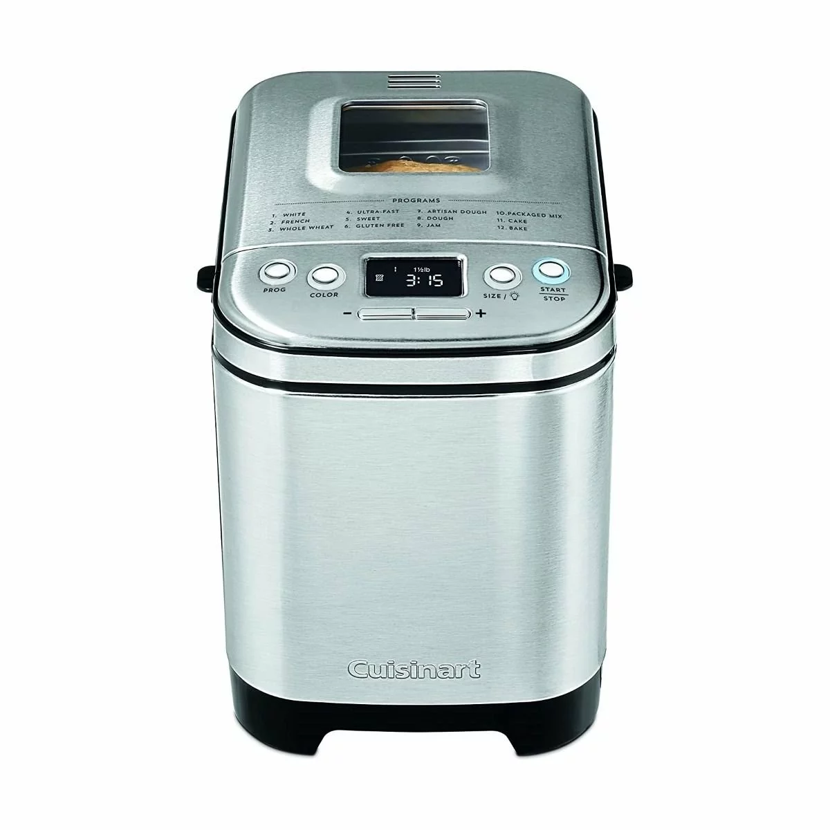 There’s nothing like the smell and taste of homemade bread. The challenge is finding the time to make it. Let Cuisinart help you with their Compact Automatic Bread Maker. Providing full-size results in a compact footprint, the bread maker is kitchen counter friendly and features a vertical baking cavity with a nonstick pan that bakes up to 2 lb loaves. The lid comes with a viewing window and an interior light that allows you to monitor your bread’s progress without stopping. Cuisinart has filled this bread maker with technology that promises superior crust, color, and texture. The LED display offers a clear view of the countdown time, and the cycle and options you’ve selected. There are 12 preprogrammed, fully automatic, and easy-to-use menu options that allow you to dial in your loaf size (1, 1.5, 2 lbs), crust shades (light, medium, dark), and bread style. The removable, nonstick paddle mixes and kneads your dough while a friendly beep sound and ‘paddle’ on the display reminds you when to remove it. There are also audible tones to inform you when it’s time to add mix-ins and a 10-beep signal that lets you know when the bake cycle is complete. A warm cycle will keep your bread fresh and at optimal temperature for up to 60-minutes after your bread is finished. Time is no longer an inhibitor – with a 13-hour delay start timer, the wonderful aroma of just-baked bread can be waiting for you when you wake up or when you get home!