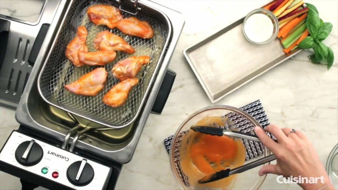 Enjoy all of your fried favorites at home with the Cuisinart 4-Qt Professional Deep Fryer (Stainless Steel)! The 1,800 watt immersion-style heating element heats quickly and efficiently while the removable oil reservoir holds 1 gallon of oil so you can fry up to 2.3 lbs of food at once. The durable stainless steel mesh basket has a cool-touch handle that provides a solid grip when moving food into or out of the oil reservoir. Adjustable temperature control gives you the flexibility to accommodate a range of oils with different smoke points, and a built-in 30-min timer helps keep track of cook time.