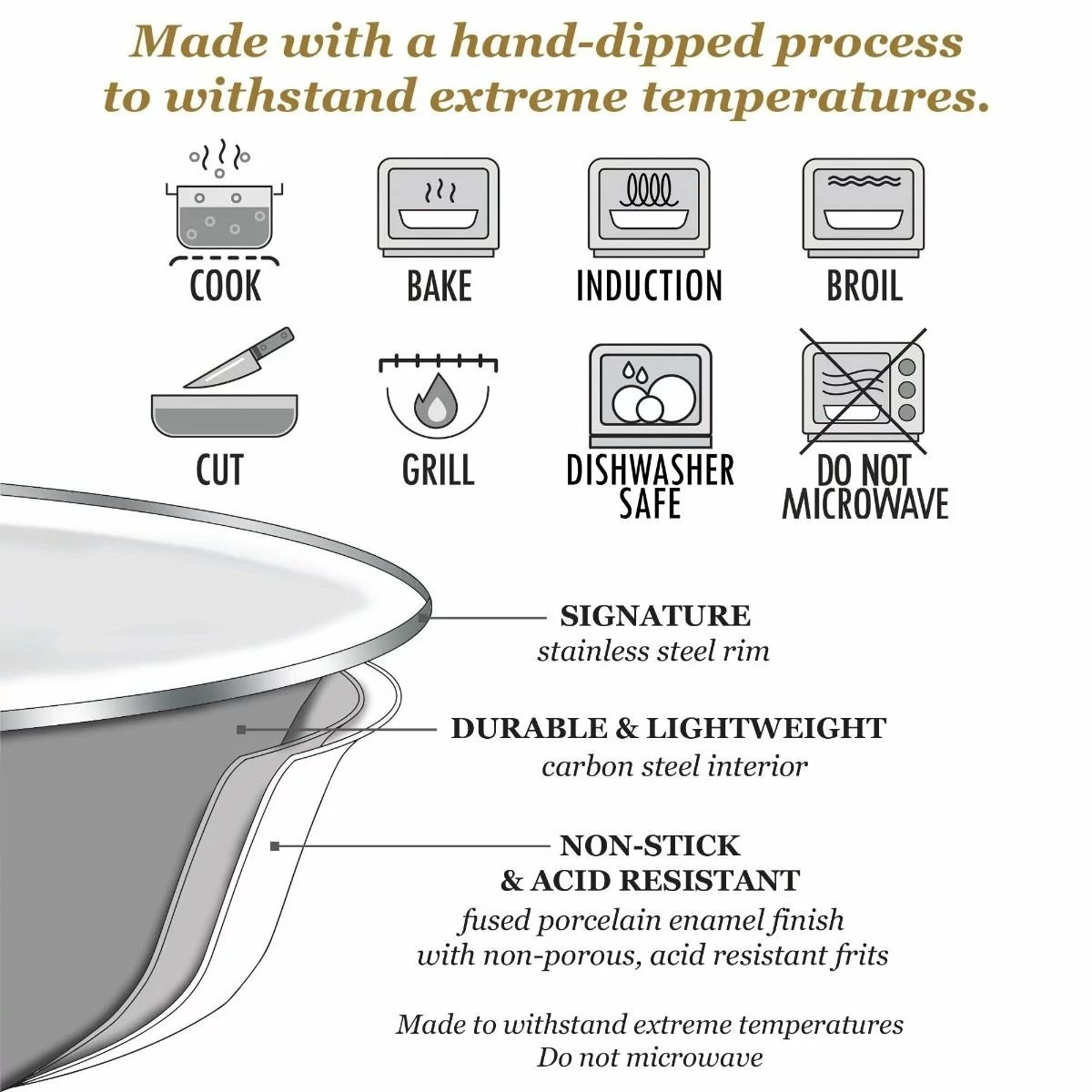 Golden Rabbit Enamelware 16″ x 12.5″ Roasting Pan with Lid – Cobalt Swirl Features: