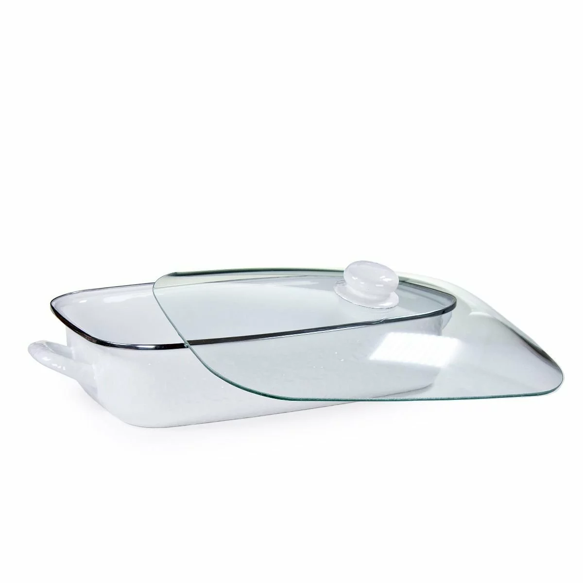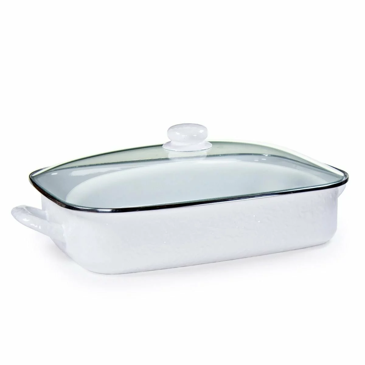 Golden Rabbit Enamelware 16″ x 12.5″ Roasting Pan with Lid – White Features: