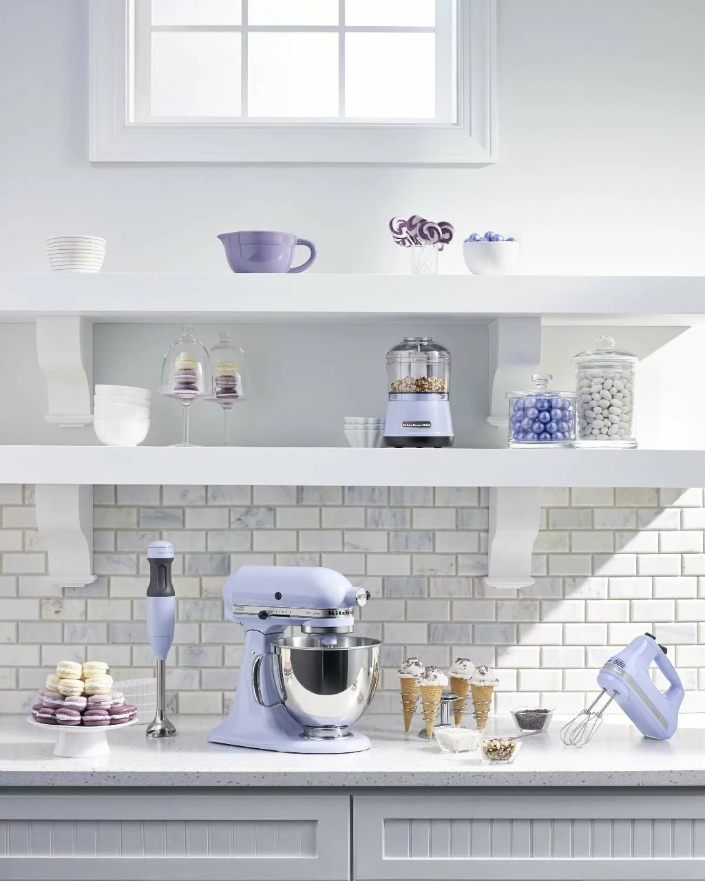 Mix up a batch of brownies, knead homemade pizza dough, or whip up meringue with the KitchenAid 5-Qt Artisan Stand Mixer! From desserts to appetizers and main dishes, the Artisan will open up a world of tasty possibilities. In glossy Lavender Cream, a pale, creamy purple shade, it’s a fun but practical way to bring your favorite shade into your kitchen.