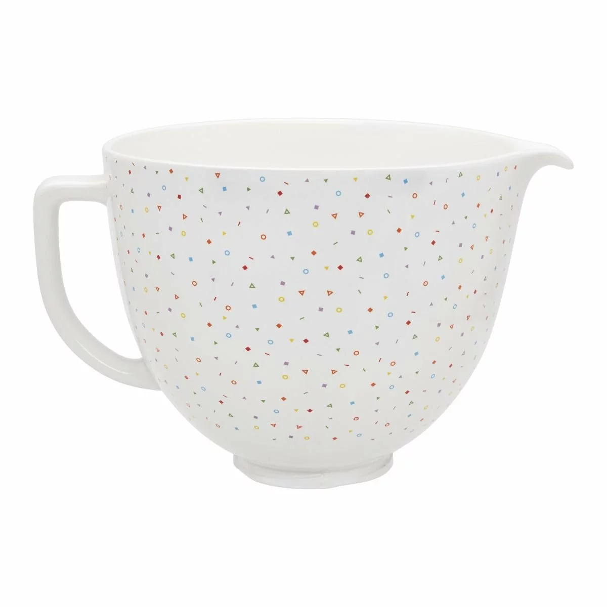 Mixing your favorite recipes is quick, easy, and a little more stylish with the KitchenAid 5-Quart Confetti Sprinkle Ceramic Bowl + Flex Edge Beater! This set includes a KitchenAid 5-Quart Ceramic Bowl & a KitchenAid Flex Edge Beater that are compatible with all KitchenAid 4.5-Quart & 5-Quart Tilt-Head Stand Mixers.