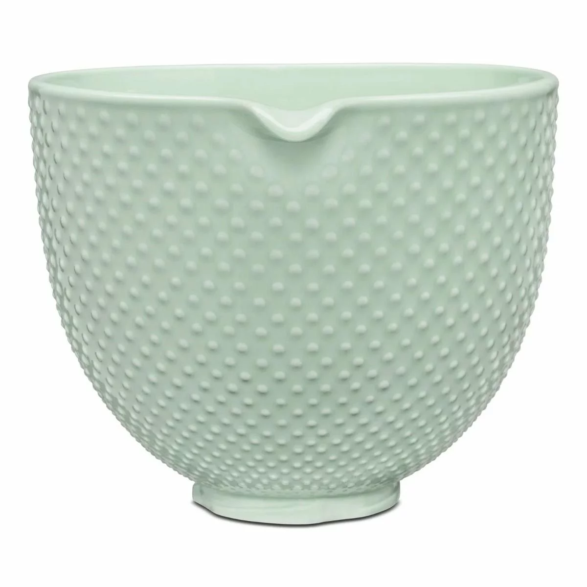 Accent your countertop with an elegant hint of color as you mix your favorite recipes with the KitchenAid 5-Quart Dew Drop Ceramic Bowl! The bowl is embossed with delicate droplets for a simple yet sophisticated design in a delicate pistachio green, and it is compatible with most KitchenAid 4.5-Quart and 5-Quart Tilt-Head Stand Mixers to add both beauty and functionality to your kitchen. Made from titanium-reinforced ceramic, this bowl is chip, crack and stain-resistant and safe for use in the freezer, microwave and oven (up to 475°F). Use it for every step of your food prep process, from mixing ingredients to melting chocolate to chilling dough. When you’re ready to clean up, this bowl is also dishwasher-safe. For a uniquely beautiful mixing bowl that will delight you with every use, order the KitchenAid 5-Quart Dew Drop Ceramic Bowl today!