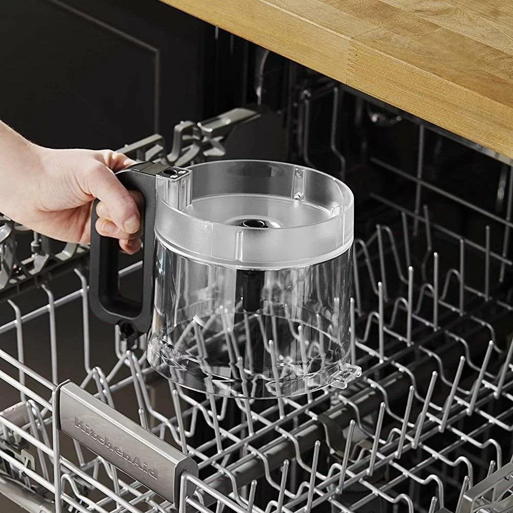 Inspired to make homemade roasted garlic hummus, oatmeal peanut butter energy bars, or even some old-fashioned mashed potatoes? If not, then the KitchenAid 9-Cup Food Processor in Black Matte will surely bring you the motivation to make your favorite meals in minutes. Made from plastic, this food processor has 3-speed options and the ability to chop, shred, mince, slice, knead, whip, mix, and puree. Enjoy the possibilities from vegetable dip and salsa to meatballs and pizza dough! This 9-Cup Food Processor boasts an innovative design with bowl assembly that takes a click. Both the blade and disk fit conveniently inside for maximum storage. Featuring a stainless steel multi-purpose four-blade, this machine allows you to process even the hardiest of ingredients, even mincing up 500 grams of meat in just seconds. This Food Processor includes a 9-cup work bowl, lid with 2-in-1 feeding tube, multi-purpose four-blade, reversible slicing/shredding disc, whisk accessory refrigerator lid, and dough blade. This device and all its components are also easy to clean in the dishwasher. With easy storage, simple controls with pulse options, and simple assembly, don’t let kitchen work overwhelm you – let the KitchenAid 9-Cup Food Processor in Matte Black help you make the dinners you and your family deserve!