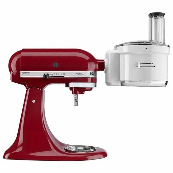 The beauty of a Kitchen Aid stand mixer is the ability to multi-task using one appliance! And KitchenAid again expands your culinary capabilities with this ExactSlice Food Processor Attachment for Stand Mixers, both tilt-head and bowl-lift models. The KitchenAid ExactSlice System allows you to change slicing from thick to thin with one slide of the exterior lever. That is pure convenience and simplicity! No changing discs during slicing to fit your needs. This KitchenAid mixer attachment includes three discs, a grating disc, a slicing disc and a julienne disc. This combination makes the food processor package perfect for so many needs. So multi-task away in the kitchen with the Exactslice Food Processor Stand Mixer Attachment. Kitchen Aid helps you make better, more beautiful food quickly and easily!