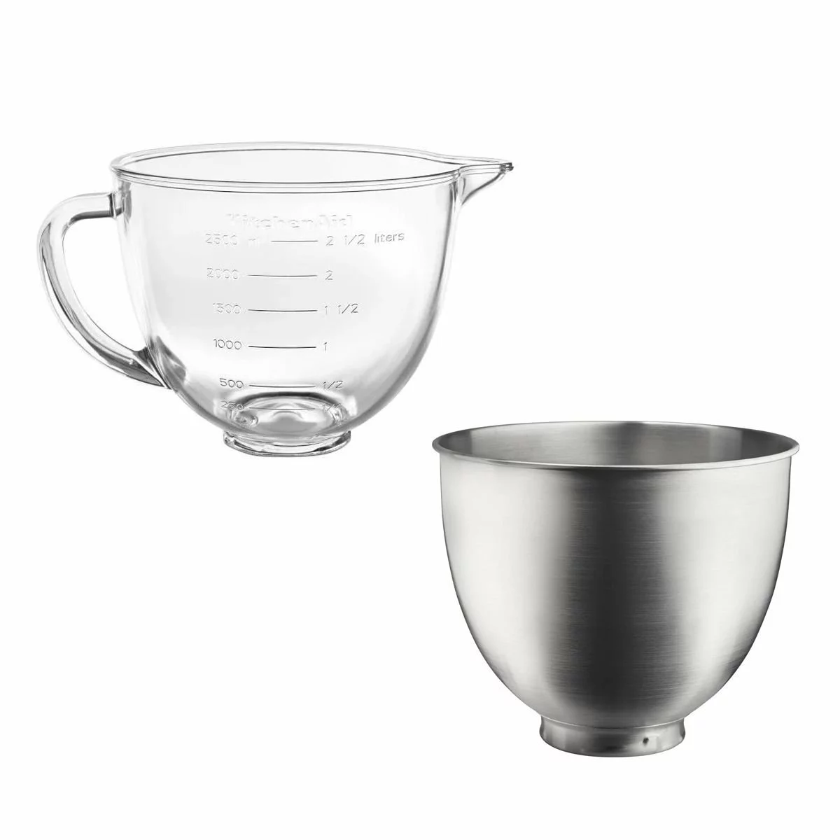 - Includes a 3.5-Quart Brushed Stainless Steel Mixer Bowl & a 3.5-Quart Glass Mixer Bowl