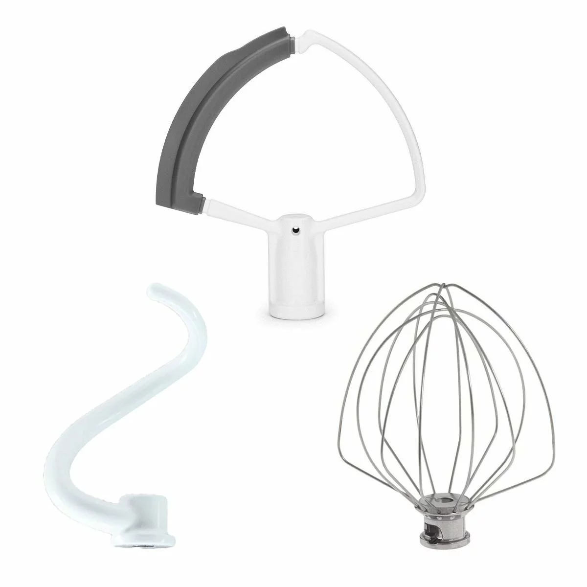 This Everything Kitchens exclusive KitchenAid accessory bundle with Flex Edge Beater, Spiral Dough Hook, and Wire Whisk puts some of the most-used mixer accessories into your hands for quick transitions with different mixes. Whether you need a second set of these handy accessories or you’re just starting off with a 5 or 6Qt Bowl-Lift Stand Mixer, this bundle is the perfect way to upgrade your efficiency for a wide variety of mixing tasks! All accessories in this bundle are compatible with KitchenAid Bowl-Lift Stand Mixer models KP26M1X (with the stainless steel bowl) & KV25G.