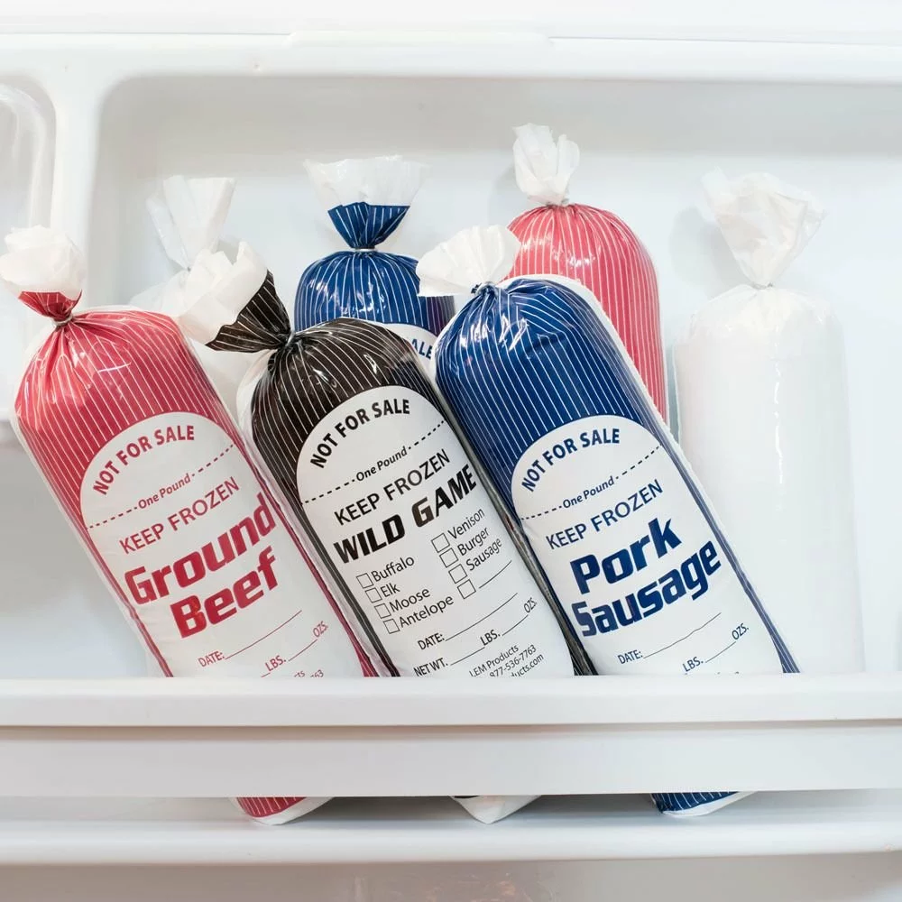 Keep your frozen ground beef portioned to fit your needs and safe from freezer burn with LEM 2 lb. Ground Beef Storage Bags – 25 Count. These durable polyethylene freezer-safe bags allow you to perfectly portion and freeze your home-processed or store-bought ground beef for any recipe. At 2mm thick, the bags protect your ground beef from freezer burn, and can be filled to their 2 lb. capacity without worries of the bag splitting. The 1 1/2″ gusset lends to the bags’ durability by preventing them from bursting at the seams. Keep your freezer neatly organized – the bags neatly stack when full and frozen and have labels that allow you to denote the date of preparation and the net weight, keeping the proper amount of meat for spaghetti sauce, burgers, or meatloaf at an arms reach. For your ground-beef storing needs, use LEM 2 lb. Ground Beef Bags – 25 Count!