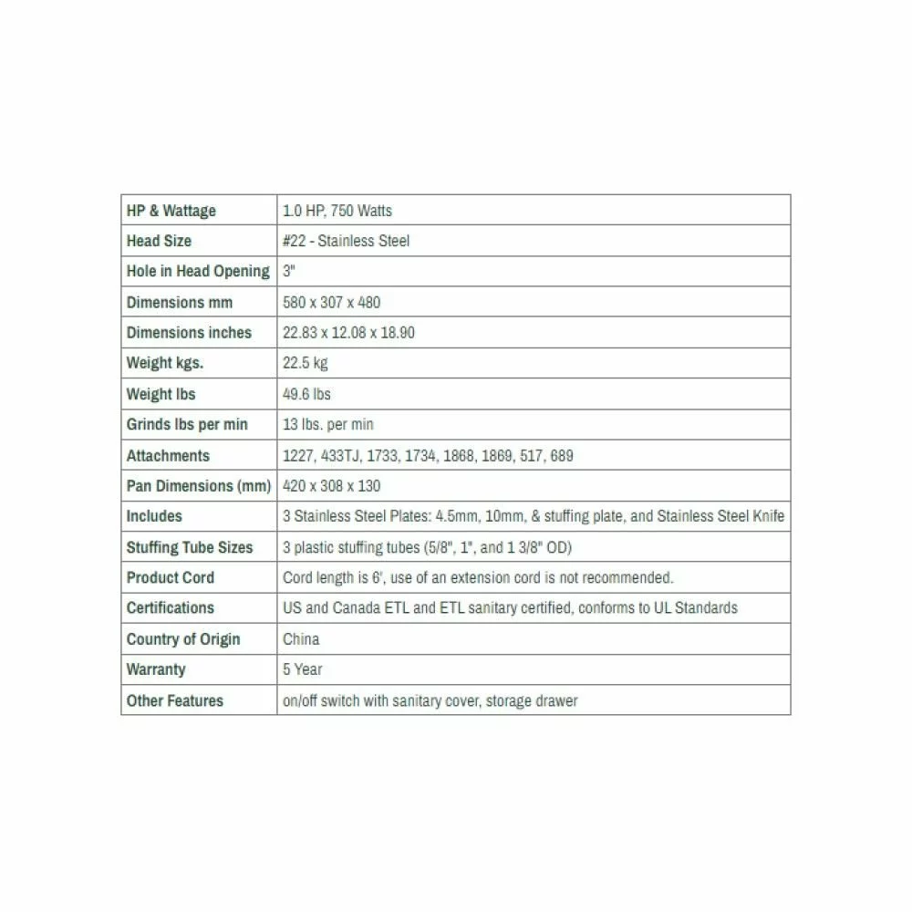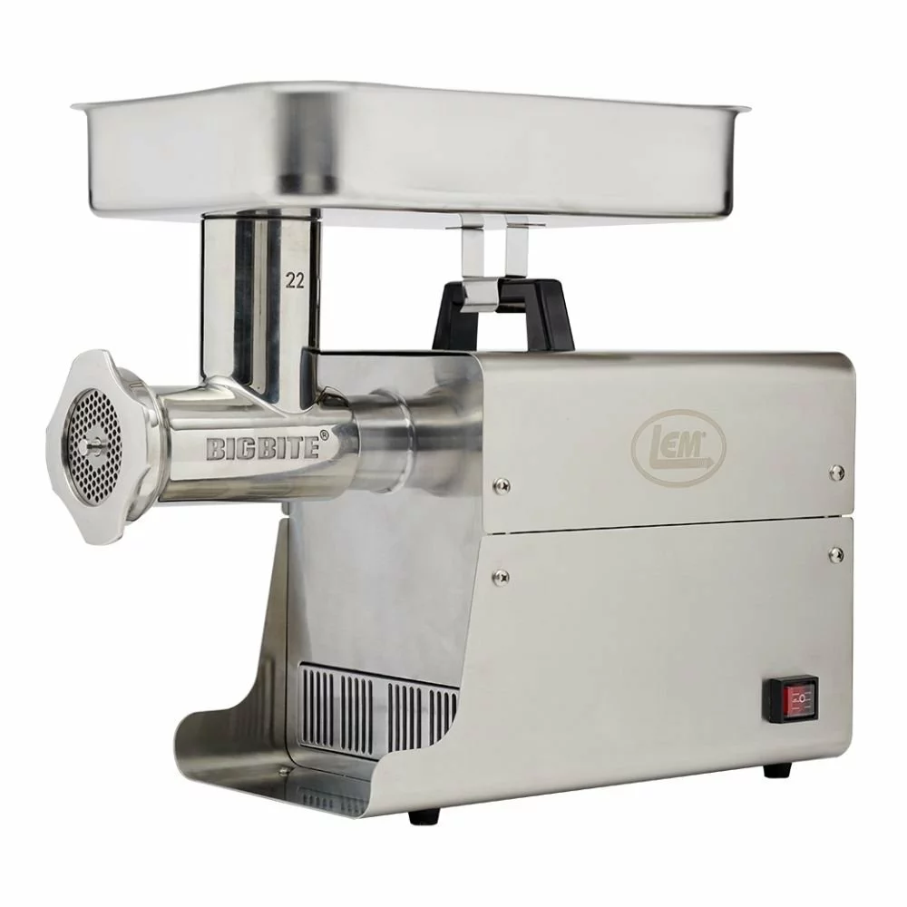 Processing meat has never been easier than with the LEM Big Bite Meat Grinder #22. This powerful grinder is made with a durable stainless steel body, all-metal gears, and a permanently lubricated motor, ensuring it can take on large quantities of meat with ease. Equipped with the LEM exclusive auger, the Big Bite meat grinder processes meat 30-50% faster than traditional grinders. From venison to beef to raw chicken bones to anything in between, your Big Bite Meat Grinder can process it all and is a must-have for those who hunt or purchase their meat in bulk. Create unique recipes by mixing meats and enjoy knowing where your food comes from, rather than cooking with mystery meat from the grocery store. Add the LEM Big Bite Meat Grinder #22 to your meat-processing arsenal and transform the way you cook.Â