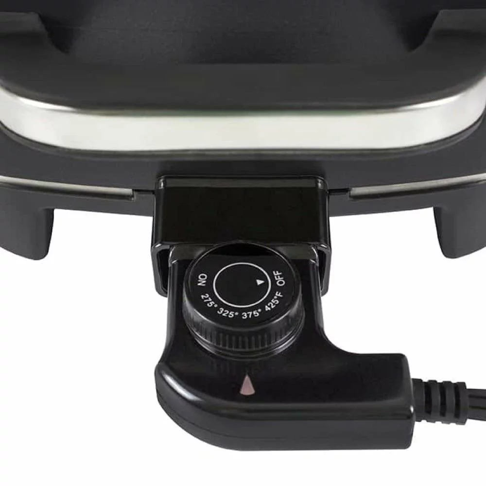 Prepare meals at home or on-the-go with the 12″ Electric Skillet from Nesco. With a sturdy die-cast construction, this electric skillet has a large, non-stick cooking surface with a generous 4″ depth that makes it perfect for your favorite stir fry or pasta dish as well as a classic eggs-and-bacon breakfast. It has an easy-to-read adjustable temperature control and a safety valve on the lid to release steam. Also included is a steaming & roasting rack that is perfect for fish, veggies and more. When it’s time to wash up, the skillet wipes down easily and the lid can be cleaned in the dishwasher. For an electric skillet that can tackle all your needs, from a quick one-skillet meal at home to a hearty breakfast on your weekend camping trip, order your Nesco Electric Skillet today!