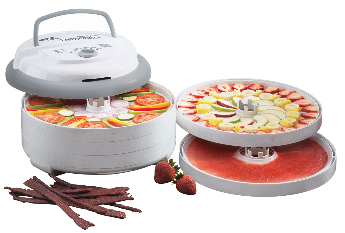 Nesco dehydrator trays are top-rack dishwasher safe (must be removed before drying cycle). Hand-washing recommended.