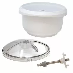 From the top! Everything where they should be? Good. With the Artiste Copolyester Complete Bowl Cover by NutriMill, your NutriMill stand mixer is finally ready for you to flip “that” switch. A copolyester build, the reliable bowl cover sits comfortably and securely atop the stand mixer bowl, preventing backsplashes and keeping what’s inside within reach of the dough hook. But the cover is more than what it seems: by its specific shape, it is able to contain any flying debris, like flour, allowing you to thoroughly keep all of that dough inside, along with a variety of other ingredients. On the outside of the bowl of the NutriMill Artiste Stand Mixer, the bowl cover attaches rather readily; but not only that, once in place, you’re all set to let the mixer get to work so that your hands don’t have to. Not long after, you’ll have yourself a lump of kneaded bread, ready for any dessert or meal. Artisan breads, cakes topped with strawberries, and more are nothing more than another attachment away, the NutriMill Artiste Copolyester Complete Bowl Cover that is.