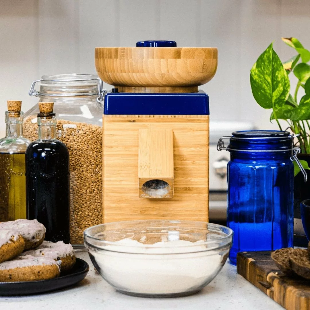 With industry-leading patented design features and a 5-year manufacturer warranty, the NutriMill Harvest Grain Mill (Blue Trim) brings aesthetic appeal and everyday simplicity to the process of creating nutritional all-natural ingredients for use in your kitchen.