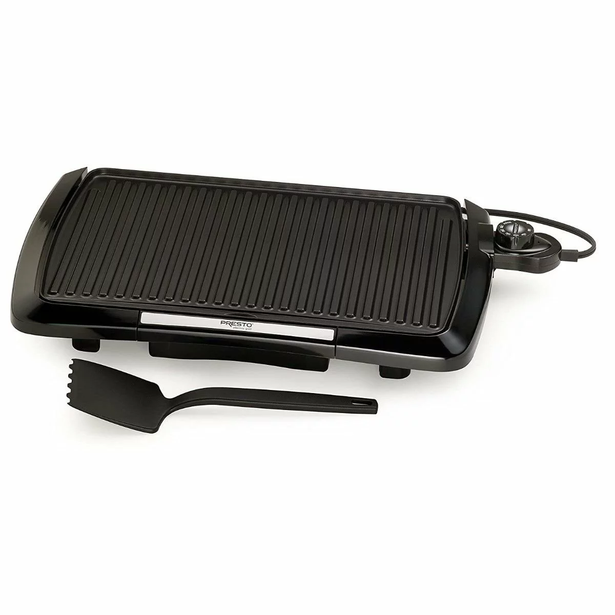 Grills offer a unique advantage over traditional skillet cooking, especially when dealing with your favorite meats. In a pan or skillet, a steak or burger patty will sit in the rendered fat, resulting in a fatty, greasy piece of meat. The raised-grid grilling surface of the Cool-Touch Grill doesn’t just give you those beautiful, restaurant-quality grill marks everyone loves! It also allows rendered fat to drip down while your food cooks, resulting in a leaner, healthier piece of meat! That fat and any crumbs of food will drop down to the Presto®’s convenient removable drip tray for easy disposal! And they don’t call it the Cool-Touch for no reason! The outer base of the grill stays cool for easy maneuvering in the kitchen and avoiding burnt counters, or worse, trips to the doctor! The grill is made of durable cast aluminum and comes in a sleek, modern black finish. Because of its unique construction, when the heat control element has been safely removed, the grill is fully immersible and dishwasher safe for easy cleanup!