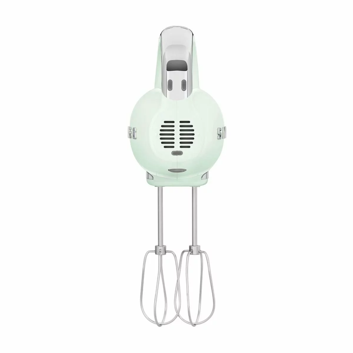 Bring the iconic style of the 1950s to your kitchen with the SMEG Hand Mixer in Pastel Green! This stylish hand mixer blends nostalgic retro design with modern technology for a beautiful & versatile tool you’ll love using. With 9 speed levels and a Turbo function, this hand mixer features a control panel with a backlit LED display that shows the speed and time of use, so you can quickly and easily monitor how long you’ve been mixing. When you’re done mixing or need to take a break, the non-slip feet allow the mixer to rest upright without tipping over and creating a mess.