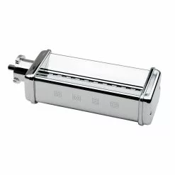 Enjoy handcrafted Italian-style pasta in the comfort of your home with the SMEG Fettuccine Maker Accessory! This pasta cutter seamlessly attaches to the power hub of your SMEG Stand Mixer and is crafted of durable chrome steel. Simply attach to your SMEG Stand Mixer, slide pre-rolled pasta dough through the cutter, and in minutes you’ll have perfectly cut pasta noodles that are ready to be boiled, mixed with your favorite pasta sauce, and enjoyed! Be sure to check out other SMEG Stand Mixer accessories to expand your SMEG Stand Mixer’s possibilities!