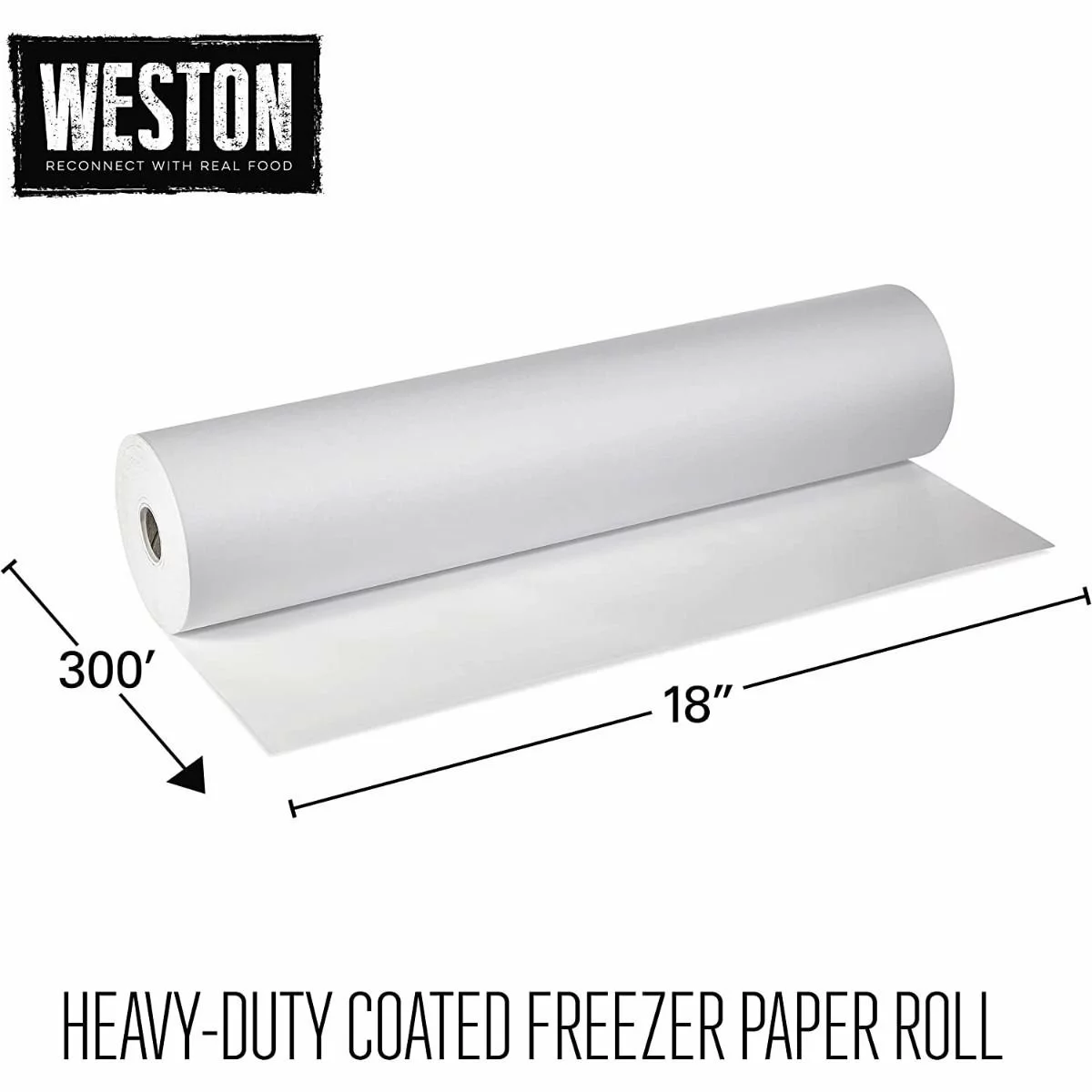 The Weston Heavy Duty Freezer Paper is great for wrapping fresh meat, fish, vegetables, berries, and other foods for storage in the freezer. The heavy-duty 50/15 freezer paper provides a barrier to air and moisture, protecting the flavor and quality of frozen foods while preventing freezer burn and leaks. The paper has a single-sided plastic coating that prevents sticking and seals in juices. Since the paper doesn’t stick to food during thawing and freezing, packages are easier to unwrap.